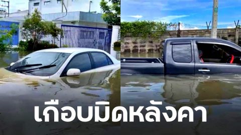 ภาพน้ำท่วมหนักสมุทรปราการ เกือบมิดหลังคารถยนต์