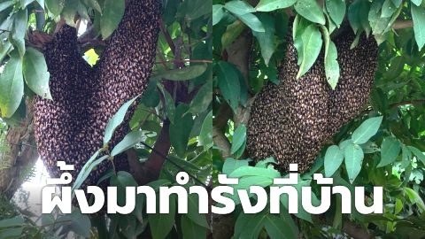สาวกรี๊ดลั่น! ผึ้งมาทำรังที่บ้าน รังใหญ่มาก ขนลุกไปหมด