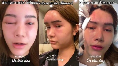 อุทาหรณ์! สาวฉีดฟิลเลอร์หน้าผาก ก้มเร่งไฟทำ "กุ้งเผาระเบิด" ใส่หน้าบวมเป่ง หวิดเสียโฉม