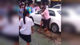 อย่าไปตบตรงนั้น มันโดนรถเค้า !! นักเรียนตบกัน แม่ไม่ห้ามแถมเป็นกรรมการยืนมองเฉย