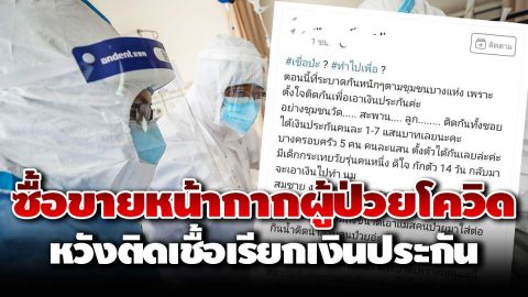 แชร์สนั่น!! ซื้อขายหน้ากากผู้ป่วยโควิด หวังติดเชื้อ เรียกรับเงินประกัน