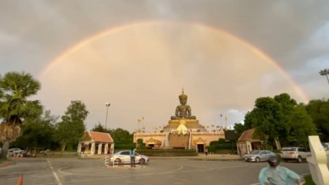 สาธุ ปรากฏการณ์รุ้งกินน้ำครอบองค์พระใหญ่ ในงานประเพณีอุ้มพระดำน้ำ