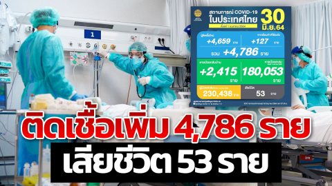 ข่าวเศร้า! โควิดวันนี้ พบผู้ติดเชื้อเพิ่ม 4,786 คน ดับเพิ่ม 53 ราย