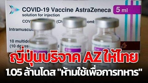 "ญี่ปุ่น" บริจาค แอสตร้าเซนเนก้า ให้ไทย 1.05 ล้านโดส "ห้ามใช้เพื่อการทหาร"