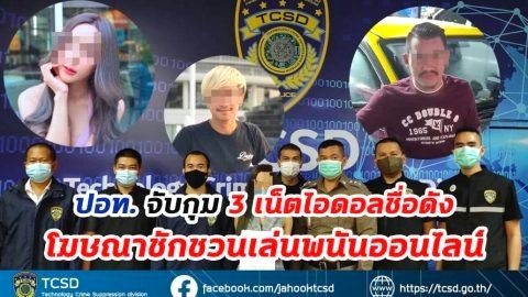 ปอท. จับกุม 3 เน็ตไอดอลชื่อดัง โฆษณาชักชวนเล่นwนันออนไลน์