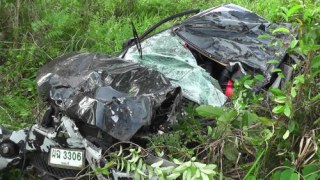 ต่างชาติซิ่งกระบะหลับในชนต้นไม้รถเยิน หามส่ง รพ.คลองใหญ่ โชคดีเจ็บเล็กน้อย