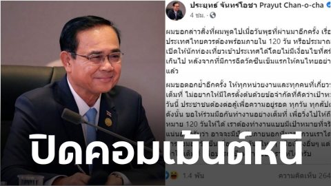 เพจนายกฯ ทัวร์ลง!! ปิดคอมเม้นต์หนี!! หลังโพสต์ เรื่องตั้งเป้าให้ ไทยควรต้องพร้อมภายใน 120 วัน และวัคซีน