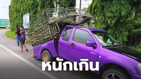หนุ่มขนสับปะรด 2 ตัน กระบะหลังหักเลย