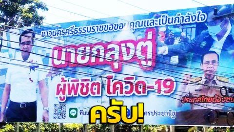 ป้ายลุงตู่พิชิตโควิด เมื่อปีที่แล้ว วันนี้ก็ยังเหมือนเดิม