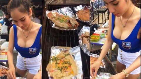 ดีต่อใจ!! แม่ค้าปลาเผาสาวสวย แต่งตัวlซ็กซี่ ลูกค้าเพียบบบ