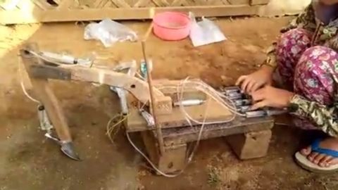ตะลึง+ทึ่ง เด็กหญิงชาวคะฉิ่นสร้างรถแบ็คโฮจำลอง ควบคุมได้เหมือนของจริง