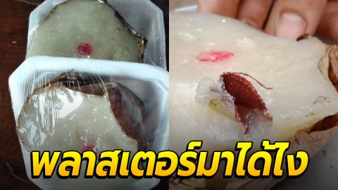 แทบอ้วก! ซื้อขนมเข่งมา กินคำแรกเจอเต็มๆ พลาสเตอร์มาได้ไง