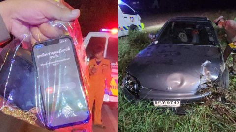 ชายขับรถคว่ำพลิกทับ อก "ไอโฟน" ขึ้นเตือนสัญญาณฉุกเฉินให้ขอความช่วยเหลือ แต่กดไม่ได้