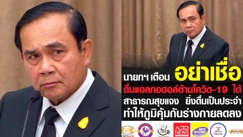 นายกฯ เตือนประชาชน อย่าเชื่อ ดื่มแอลกอฮอล์ต้านโควิด-19 ได้