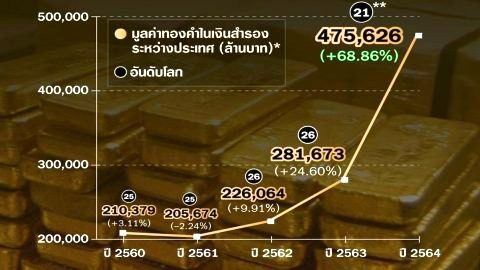 คลังไทยเลื่อนขั้นเป็นเบอร์ 1 มีทองคำสำรองมากสุดในอาเซียน