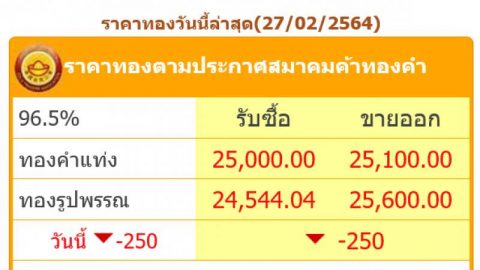 ร่วงแรงที่สุดในประวัติศาสตร์ ราคาทองคำ วันนี้ 27 กุมภาพันธ์ 2564 คนแห่ซื้อ