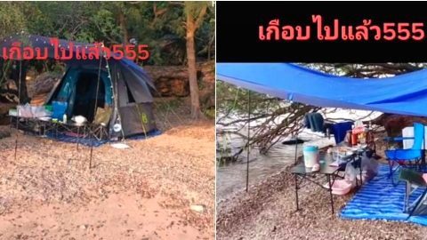 เกือบไปแล้ว!! สาวกางเต็นท์นอนชายทะเล ตื่นเช้ามา เกือบไปนอนในทะเลแล้ว