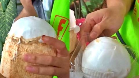 เห็นแล้วหิว!! มะพร้าวทานทั้งลูกเชียงใหม่ มะพร้าวปอกเปลือกพร้อมกิน