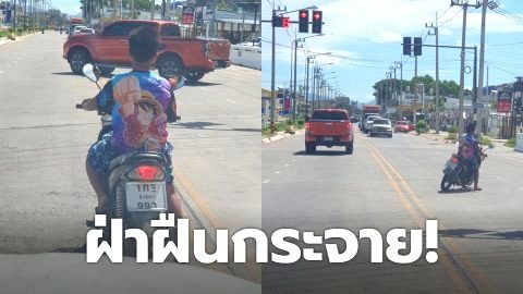พ่อแม่คิดอะไรอยู่? ตัวแค่นี้ขับจยย. แมสก์ไม่สวม หมวกไม่ใส่ ฝ่าสัญญาณไฟจราจร