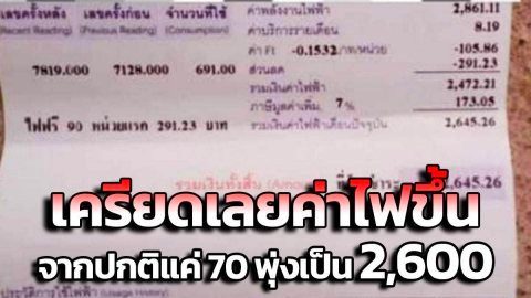 หนุ่มเครียด! ค่าไฟขึ้นหนัก จากปรกติ 70 บาท กลายเป็น 2,600