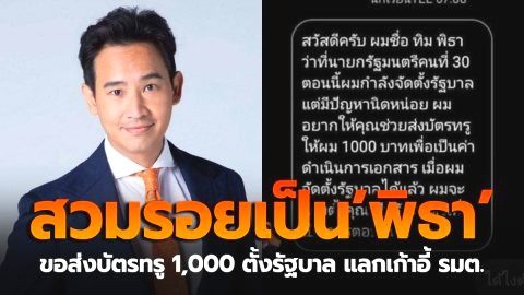 มาแล้วมิจฉาชีพ! โลกโซเชี่ยลแชร์การสวมรอยเป็น "ทิม พิธา" ขอยืมเงินตั้งรัฐบาล 1,000 บาท แลกเก้าอี้ รมต.