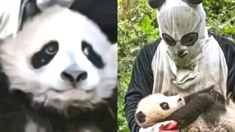 เนียนเกิ๊น! เจ้าหน้าที่ผู้ดูแลแพนด้า ปลอมตัวทุกครั้งที่มีการเข้าหาลูกแพนด้า เพื่อป้องกันไม่ให้แพนด้าผูกพันกับมนุษย์