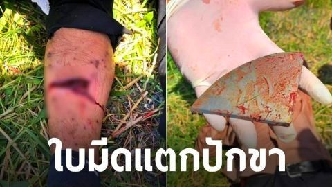 เตือนภัย !!ใบเครื่องตัดหญ้าโดนหิน ทำให้แตกกระเด็นบาดขาแผลลึกฉกรรจ์กระดูกแตกหวิดขาด