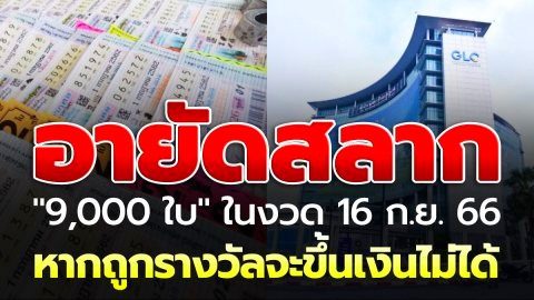 "กองสลากฯ" แจงอายัดสลาก "9,000 ใบ" ในงวด 16 ก.ย.66 เหตุประชาชนที่เป็นตัวแทนทำหาย ดังนั้นหากถูกรางวัลจะขึ้นเงินไม่ได้
