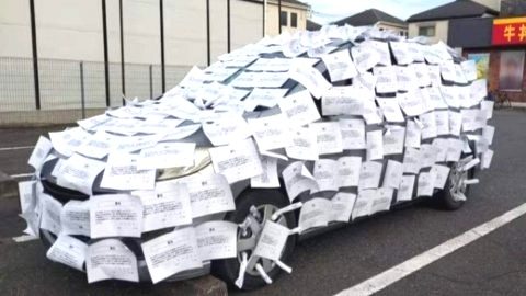 โลกโซเชียลญี่ปุ่นร้อน! เมื่อมีรถที่แอบมาจอดค้างคืนในร้าน Sukiya จนมีกระดาษเตือนทั่วรถ