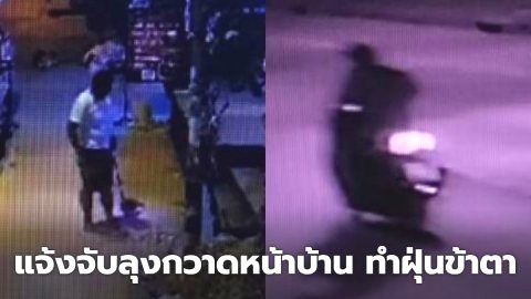 กวาดฝุ่นหน้าบ้านขี่จยย.ผ่านมา ผงเข้าตาแจ้งจับ (กล้องวงจรปิด)