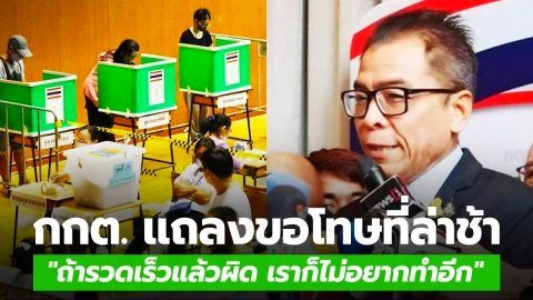 กกต. เเถลง ขอโทษที่ล่าช้า บอกเหตุผล "ถ้ารวดเร็วแล้วผิด เราก็ไม่อยากทำอีก" ชี้สาเหตุนับคะแนนได้ 99% แต่ยังไม่เสร็จ