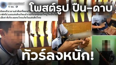 ทัวร์ลงหนัก!! หนุ่มโพสต์เฟสบุค ถืออาวุธปืน และมีดดาบ แคปชั่น "ผมจะได้ทำหน้าที่เพื่อปกป้องฯ "