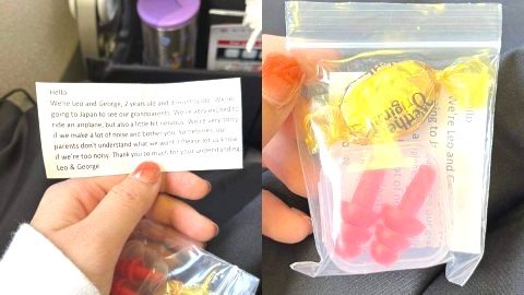 สาวชาวญี่ปุ่น อยู่บนเครื่องบินที่จะเดินทางจากแคนาดาไปยังญี่ปุ่น ได้รับถุงใสใบเล็กๆ พร้อมเขียนข้อความสุดซึ้ง