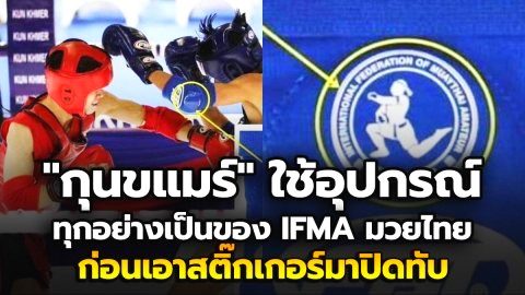 ถกสนั่น! "กุนขแมร์" ใช้อุปกรณ์ทุกอย่างเป็นของ IFMA มวยไทย ก่อนเอาสติ๊กเกอร์มาปิดทับ