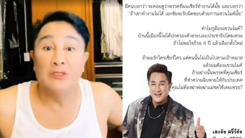 "เอกชัย ศรีวิชัย" โต้กลับหลังคนแซะ "ท้าแขวนไมค์" หลังประกาศจุดยืนทางการเมืองสนับสนุนพรรคที่ตัวเองชอบ