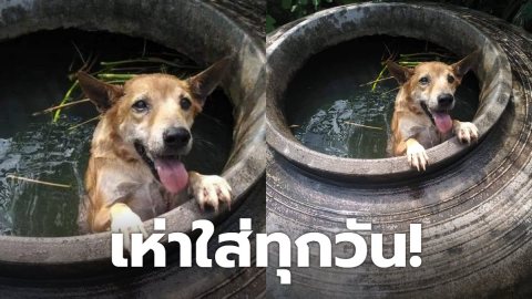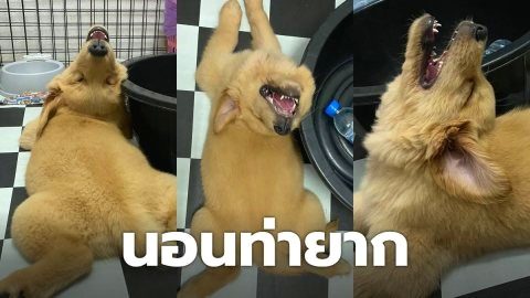 ฮาลั่น! น้องหมานอนท่ายาก นึกว่าจระเข้
