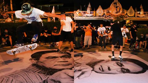 ภาพปาดตาปาดใจ เมื่อคณะราษฏรสเก็ต นัดเล่นสเก็ตบอร์ดระบายความรู้สึกถึงนายกรัฐมนตรีแบบนี้