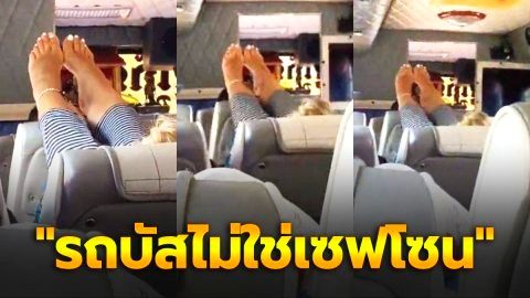 โซเชียลจวกเรื่องมารยาท! สาวโพสต์คลิป "รถบัสไม่ใช่เซฟโซน" หลังเจอผู้โดยสารคาดเป็นต่างชาตินั่งเหยียดขาพาดเบาะ