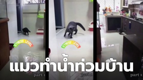หนุ่มถึงกับปลง เมื่อน้องแมวสุดรัก ทำน้ำท่วมบ้าน (มีคลิป)