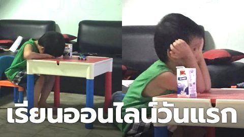 ลูกชายเรียนออนไลน์วันแรก สภาพเป็นงี้