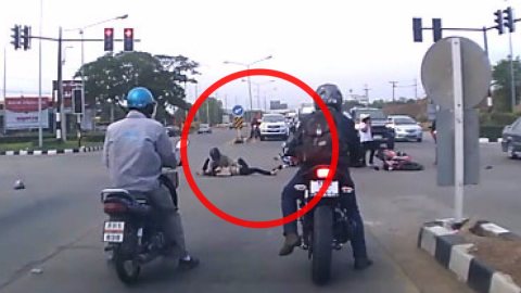 ชาวเน็ตจวกยับ !! กระบะซิ่งฝ่าไฟแดง ชนแหลก กวาดมอเตอร์ไซด์ เจ็บระนาว ขับรถแบบนี้ ซื้อใบขับขี่มาหรอว่ะ