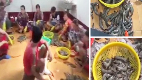 โลกนี้อยู่ยาก! ตร.บุกทลายโรงงานผลิตกุ้งปลอม พบส่วนผสมอ้วกแทบพุ่ง อันตรายต่อชีวิต