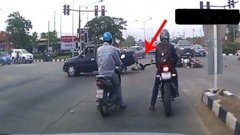 ชนเละทั้งไฟแดง !! กระบะซิ่งฝ่าไฟแดง ชนกวาดมอเตอร์ไซด์ เจ็บระนาว ชาวเนตจวก จิตใจทำด้วยอะไร