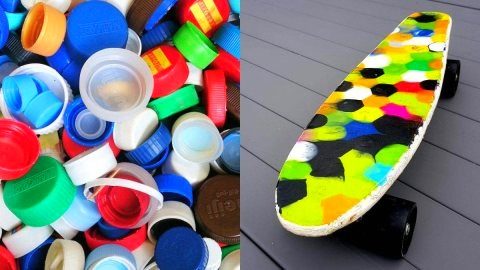 สุดยอดการรักษ์โลก! เพจดังเผยวิธี เปลี่ยนฝาขวดพลาสติก 2,000 ฝา กลายเป็นสเก็ตบอร์ด