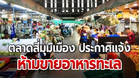 ตลาดสี่มุมเมือง ประกาศแจ้ง ห้ามขายอาหารทะเล กุ้งทุกประเภท