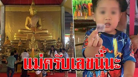 หนูน้อยหยิบเลขให้แม่ หลังกราบขอพร หลวงพ่อโสธร องค์ใหญ่ที่สุดในโลก