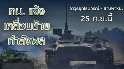 กองทัพบก แจ้งเคลื่อนย้ายกำลังพล อาวุธยุทโธปกรณ์ - ยานพาหนะ 25 ก.ย.นี้