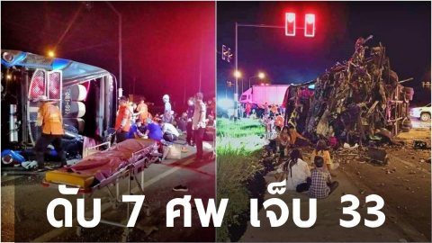 สลดใจอุบัติเหตุ รถทัวร์คณะ"อสม."เที่ยว ร้อยเอ็ด-พัทยา ชนท้าย 18 ล้อที่โคราช ดับ 7 ศพ เจ็บ 33‼️
