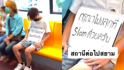 หนุ่มนั่ง BTS เขียนป้ายช่วยปลุกที หากถึงสยาม คิดว่าจะมีคนปลุกไหม? (คลิป)