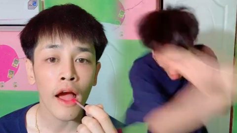 หนุ่มเล่น TIKTOK แอบทาลิป พอหันไปเท่านั้นแหละ สะดุ้งแรงมาก